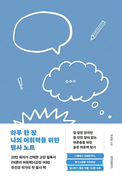 《어른의 어휘력》으로 대중에게 어휘력과 문해력이라는 화두를 던진 유선경 작가의 첫 필사 책이다. 전작에서 ‘어휘력으로 세상을 인식하는 통찰을 제공’했다면 이 책에서는 어휘력과 문장력, 문해력을 끌어올리는 구체적인 방법 ‘필사’를 소개한다. 특히 어휘력은 책 읽기만으로 향상되기 힘들다고 지적하며, 어휘력을 기르는 구체적인 방법과 그에 따른 필사 가이드를 단계별로 세세하게 공유한다.