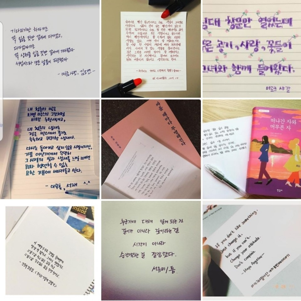 좋아하는 작가의 문장 옮기며 필력을 기를 수 있고 유익한 취미를 만들 수 있어요.